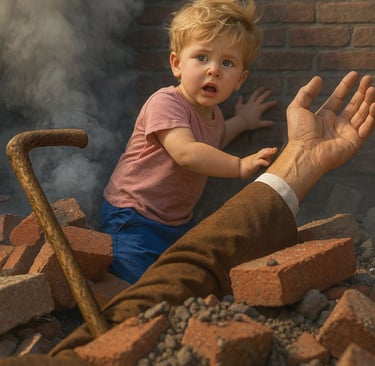 Um golpe errado destruiu uma chaminé enorme. Lembro do som dos tijolos rompendo o ar — um barulho seco, cruel. Os destroços caíram direto na rua, onde dezenas assistiam. Entre eles, um menino pequeno. Ele ficou paralisado, incapaz de fugir. O Capitão George Stacy viu primeiro. Ele correu sem hesitar, jogou o próprio corpo contra o do garoto, empurrando-o para fora da trajetória mortal. E recebeu, sozinho, o impacto dos escombros.
