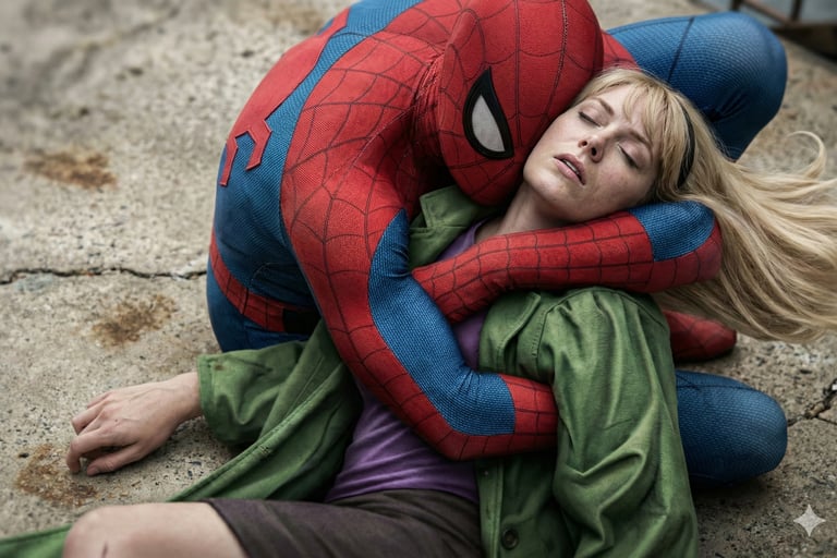 Quando o Homem-Aranha chegou, tirou o policial dos entulhos com uma delicadeza que não combinava com sua força desumana. Stacy ainda respirava — pouco, mas respirava. A expressão do Aranha naquele momento... não era de um vigilante. Era de alguém que havia perdido mais do que um aliado: havia perdido um pilar moral da cidade.